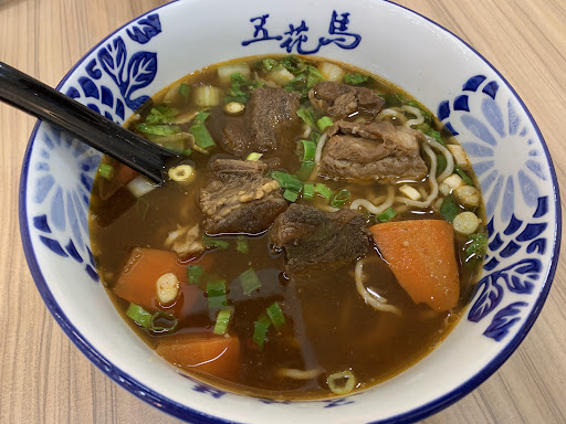 五花馬空間挺大的,但由於座位也很多,變得整體有些擁擠,不過充滿了古早味,雖然裝潢簡單,但有種親切感。 😃小米粥是免費的,可以無限暢飲,還有各種調料在旁搭配,醃鹹菜也是無限夾取,可以拿來搭配小米粥或是其他主食,非常開胃。 😍港式蘿蔔糕外焦裡嫩,極致的呈現,必點。 😆五花馬的麵條有獨特的口感,麵條有硬度但又好吸取,加上麻香的獨家醬汁,實在爽口!! 😘五花馬水餃內餡厚實,外皮軟嫩但結實夾不破,沾上醬汁非常過癮,而且有許多口味可以選擇。 😋蔥油餅油煎得脆脆,是我喜歡的口感。 😜牛肉捲餅中規中矩,但牛肉有點硬.... 😉叉燒炒飯味道不錯,感受上有些普通,不過很適合作為米食的餐點。 😏黃金地瓜餡餅是蠻特別的口感,但我抱著餡餅的心情去吃它,有點微甜的地瓜餡讓我有點不太適應。 😊藥膳排骨湯來做個完美的結尾,藥膳香的補品,滿足我全部的味蕾,溫暖了心。