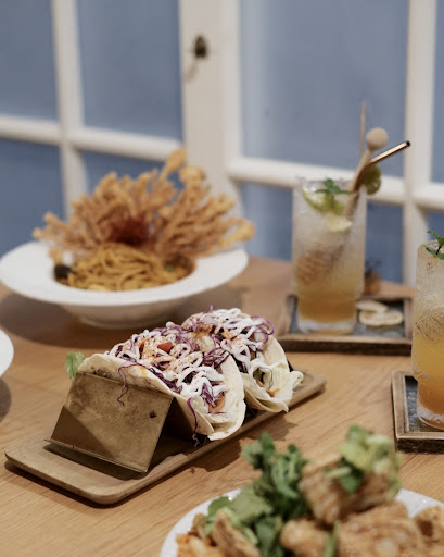 #沒有章魚燒塔可 $180 (3.5/5) 墨西哥餅皮加熱後 柔軟鹹香 有別以往常見的脆皮餅皮 顯得更溫潤些 杏鮑菇/生菜/紫甘藍/番茄/美乃滋/醬汁 許多的配料 烤餅混著濃郁醬汁一起享用 前幾口使人胃口大開 由於醬汁過於濃郁 鹹度稍微高一點 後面幾口會稍微膩口些 充滿墨西哥風味的一道餐點 且份量很足 還想試試看其他的口味 (屏東才有塔可) ♡
