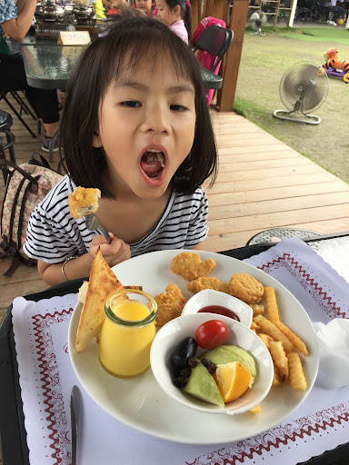 小孩可以消耗體力的好場所,有簡易籃框可以打球,一些滑板蛇板扭扭車...什麼的,不過部分已損壞需要換新,經營者需要注意,以免有小姐使用時發生意外。 沙坑有兩座,面積也算不小,貼心備有可移動的遮陽傘伺候小客人們玩沙不中沙。 不收門票,低消50,餐點很一般,不用多期待。以我一般男性點一個豬肉小火鍋附一小碗白飯售價269元來說,食材略顯簡單,都是冷凍火鍋料加幾片高麗菜清江菜加一盤約六七片的豬肉盤,吃不飽,需要再加點一份售價40元的花生厚片之類的來添肚子。分量上建議可以豐富一些,畢竟帶小孩去親子餐廳的大人除了吃還能幹嘛。 環境算乾淨,尤其廁所打掃的很衛生,有坐式馬桶跟蹲式各一間,裡面貼心準備有噴霧芳香劑給你用,比較可惜是沒看到尿布檯或類似的設施,可以加強,廁所數量也建議增加,不然常要排隊。 園區唯一的小動物就是乎應店名的小兔子,約有十來隻,但是關在柵欄裡無法觸摸,建議籠子可以維修一下了,有點簡陋,要離開時還發現有一兩隻跑來躲在車子底盤下。 蚊子滿多的,雖然點餐櫃檯備有三瓶防蚊液給客人用,不過都被噴光了,要記得...