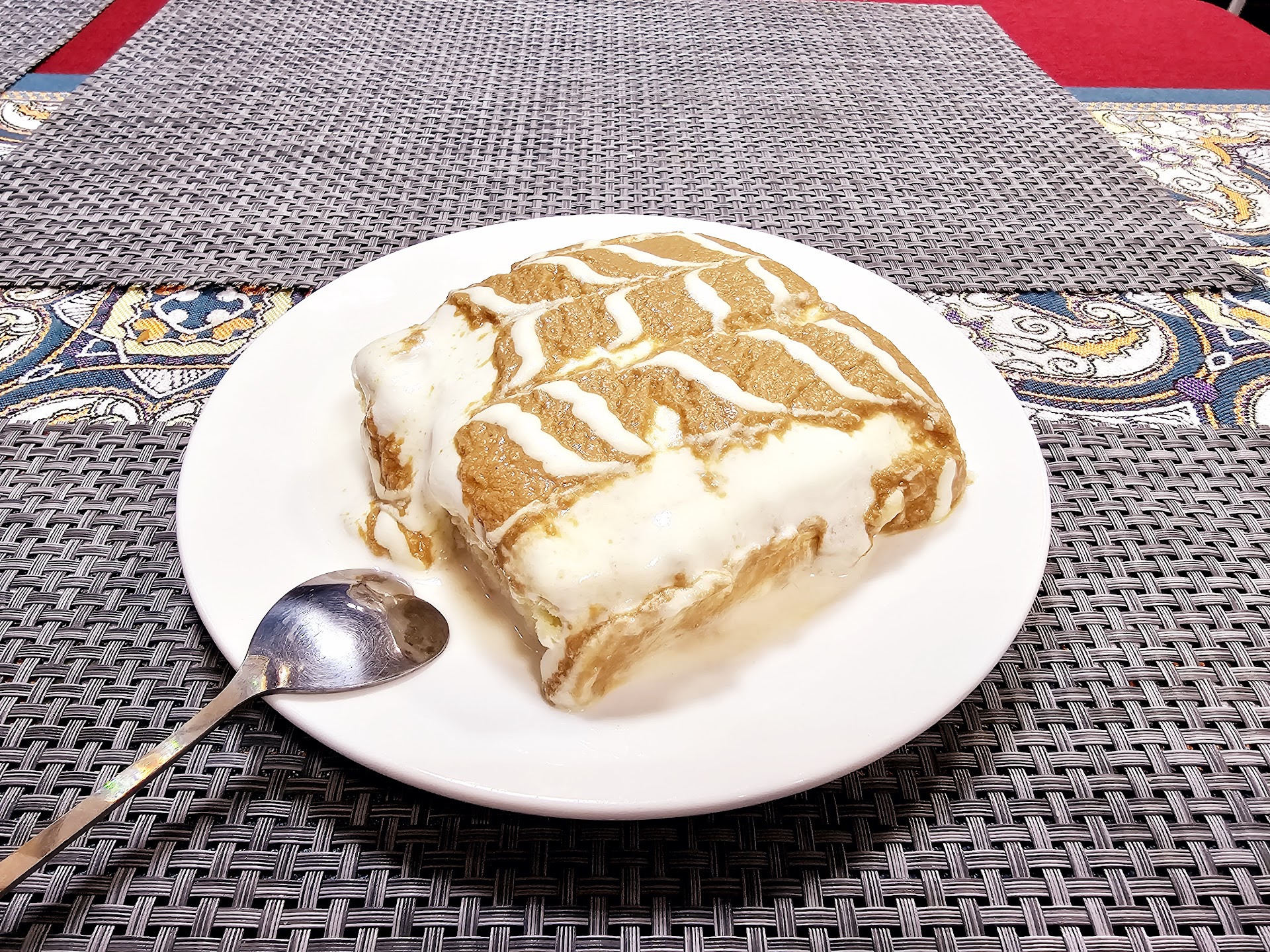 "This Turkish Milk Cake, also known as Tres Leches Cake, is a real treat. The texture is something else – it's way more moist than your typical sponge cake. Think of it like a sponge that's just soaking up all this delicious syrup, and you get this lovely hint of milk candy flavor coming through. Seriously, if you ever find yourself in Pingtung, you've gotta check out this spot for some legit Turkish grub. Don't miss out...