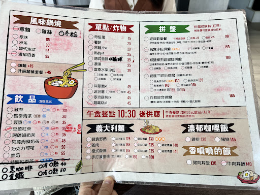 個人推薦熱的紅茶豆漿(紅茶+無糖豆漿)超好喝!白醬雞肉義大利麵味道很好,麵條有味道且湯汁剛好,只是雞肉過鹹,可能是有先醃過?牛肉丼飯則是非常鹹,但肉質是好的,期待下次來用餐...