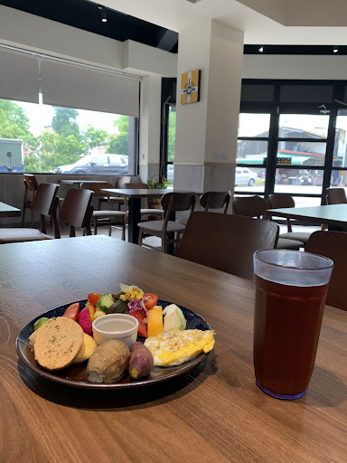 整個拼盤內容很有巧思 兩小片麵包塗醬是花生及奶酥口味 凸顯了層次口感 還有兩種不同種類的地瓜 加上我最愛的當季新鮮水果生菜沙拉 跟營養滿分的蛋 其實吃完整個拼盤真的會很飽 重點是拼盤附的飲料紅茶不是很甜的那種喔 而且⋯ 我覺得吃完回到家可以馬上跑廁所 女生應該會很愛 該不會是地瓜的厲害吧🤣🤣🤣