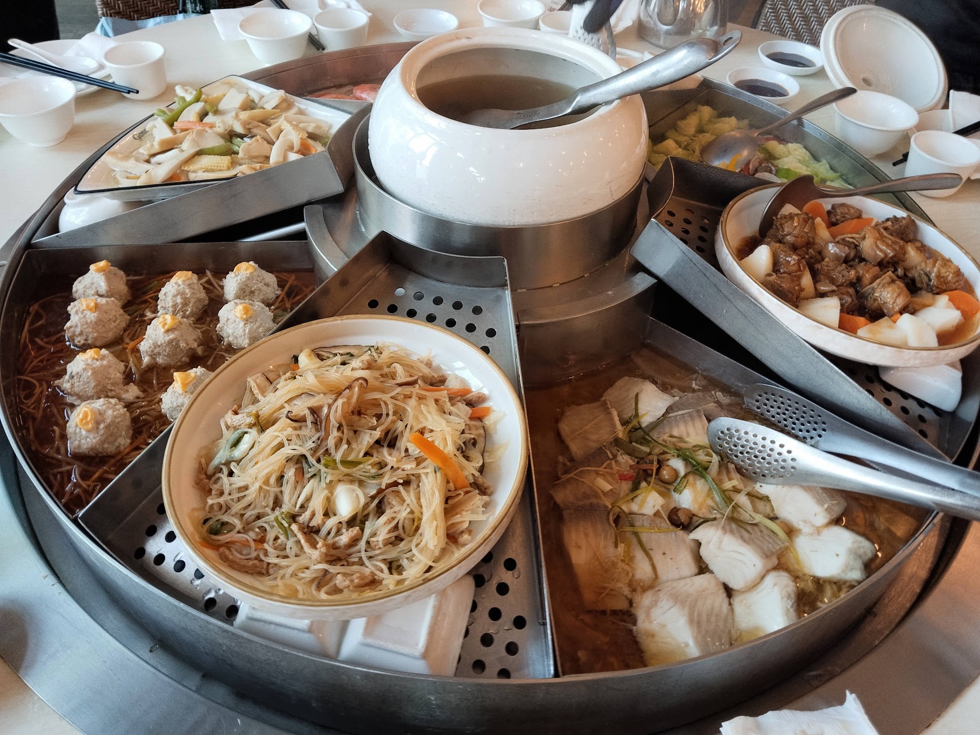Read moreQuite an experience. Food comes in GIANT steamer so very impressive presentation. Not to worry, for those who dislike bland steamed food (like me). All the dishes are baked, stewed and stir fried except the fish. The steaming is just to keep it warm and visually exciting.