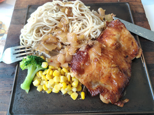 以下優缺點參雜: 東西都太普通但要價太貴 自助吧部分是一般平價牛排店都有的玉米濃湯,沒特別濃或好喝,羅宋湯有牛肉,有加分!玉米濃湯有提供麵包丁,唯一一個特色! 飲料只有兩種,無糖茶、仙草甘茶,仙草甘茶好喝,算是貴店特色之一 特製辣意外好吃,而且不辣 其他三個小菜我都不愛