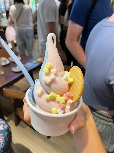 Yummy ice cream on a hot day. Personally, I think the pink should be yogurt flavor and blue should be vanilla flavor instead of the...