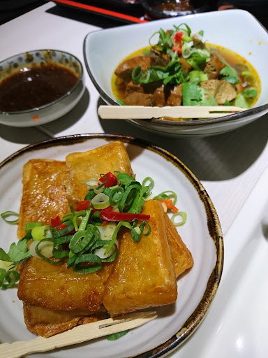 服務人員在我們入座時就告知 可以去臉書查詢優惠的圖片,在結帳時即可優惠 覺得很親切,套餐就是329+任選飲料乙杯 索取開水或是辣椒都很快幫我們送來 餐點部分點香辣牛奶鍋/南洋叻沙海鮮義大利麵 楓糖奶油鬆餅/檸檬桔汁/鮮檸檬綠 火鍋的部分還不錯,因為聽別人很推薦 叻沙義大利麵的口味是不錯吃 海鮮有蝦子大約3~4隻/淡菜/扇貝/魷魚 但!他的魷魚是生炒魷魚羹的魷魚 我覺得很不搭!應該是透抽那種才對 那種魷魚很台式(就是泡過而且發起來的魷魚) 附餐的沙拉是蜂蜜芥末醬,我個人很不喜歡 如果醬另外放會比較好,南瓜濃湯還不錯喝 鬆餅還不錯!連男性長輩都說好吃 而且很大一份!建議三個人可公家一份當甜點 但旁邊的奶油非常難吃 不是滑順的鮮奶油,是很乾的,令人皺眉困惑 飲料的部分都是選半糖,還算OK 整體而言,餐點普通,不過服務人員很親切 以下是其他的因素 1此次用餐時,有其他客人帶狗進來 而且狗沒有關在籠子,還一直吠叫 然後狗一叫,主人就一直打狗 狗的主人比狗本身還令人煩躁 只是覺得應該可以把規則講清楚一點 我們無法去跟他們講,不然等下惹禍上身 但店家應該可以更積極的"關切"狗主人 2女廁兩間隔間都很髒 而且有明顯的排泄物 雖然是使用者的問題 但店家方面應該可以加強巡視 沒有要求超高級廁所只是希望不...