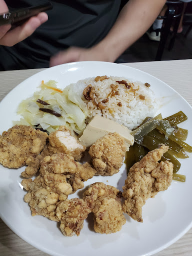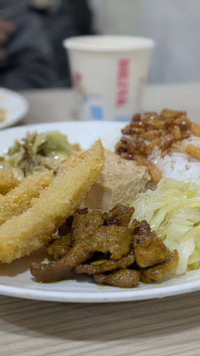 Popular with students and for good reason - its just a heaping platter of very yummy, cheap and fast comfort food! We got the Japanese style fries pork cutlet and the seasoned fried chicken nuggets , both were yummy but the chicken was far more interesting and had an awesome crispy batter with white pepper flavor ~ the sides which rotate daily were yummy, the tofu in particular was very flavorful. Best part is unlimited rice and drinks - the rice is flavored with pork fat so uber flavorful, and the drinks are 4 kinds of tea; sweetened black tea, unsweetened green tea, sweet black milk tea and sweet green milk tea. The green milk tea was a touch on the sweet side but super fragrant and yummy 😍 each meal was 100nt too! Such a good deal and open late. Was busy even when we went in 15min before closing so I imagine during rush hours it'll...