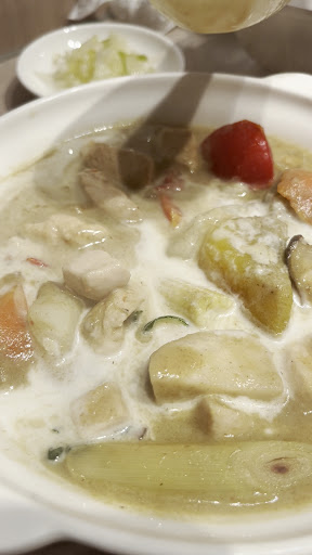首先是綠咖喱,碗中滿滿的食材,包括軟嫩的雞肉、鮮甜的蔬菜和濃郁的咖喱湯汁,讓人一口接一口停不下來。咖喱的口味非常濃郁,椰奶的香氣與香料的辛辣完美融合,整體味道層次豐富,但是超級辣,不吃辣的朋友可能要斟酌一下。