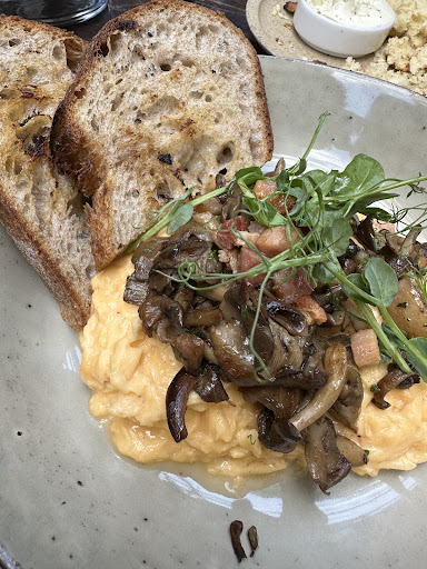 Plate work was decent, I got a scrambled egg with mushroom and sourdough bread (2 slices). Sourdough was not sour enough, mushrooms were too sour, but eggs were great - moist and balanced.