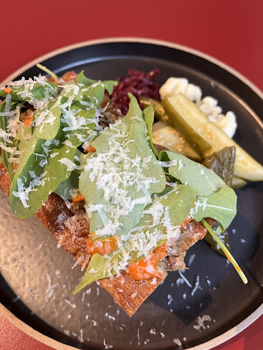 If I could give this place negative stars, I would! This is one of the worst meals I have had in a long time. This is another place that drew me in with their nice looking food pictures on social media, but unlike another recent experience where I was pleasantly surprised, I was thoroughly disappointed by everything here. Not a single thing we ordered had any flavor at all! Everything was bland and tasteless. I have never felt bored by eating a meal, until now. I finished the food because I hate creating food waste, but it was actually a chore to get through that meal. To make matters worse, the service was terrible too. The staff were nice and friendly, but they brought everything out at once. So the main course was getting cold while we were still eating the appetizers. The pulled pork with harissa was literally unflavored, tasteless pork, stuffed in a focaccia, topped with harissa sauce. The eggplant tasted like nothing, there was no sauce or anything at all. They served the pulled pork sandwich with plastic gloves. We told them they should ask people if they want them before providing the gloves and they said most people want it so they don't ask. They said that they would throw it away, even if we didn't use it. Such unnecessary plastic waste created, with no concern at all. The only redeeming quality about this place is they have nice outdoor seating. I don't understand how they have as many positive reviews or as many...