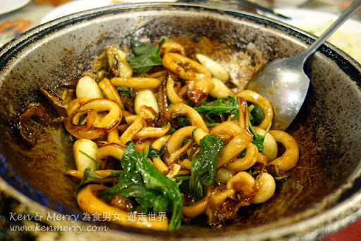 The squid dish is excellent (see photo attached) and the definite winner was what was called by Google Translate 'Traditional Baked/Roasted pork' - smokey, fatty, umami flavour all rolled into one slab of superbly cooked pork that will even have the non-fat eating adherents just having the fat along with the lean meat. Fried meehoon with meat was also good, fried oysters were well executed and Three Cup Chicken was also solid (though very standard fare). Although it is odd to have it as part of the meal vs as a dessert, the Taro Balls were...