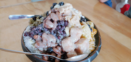 Read more加煉乳第一份不用錢份量又大八寶冰65元。 看到招牌很特別,會注意到它!!原來老闆真有才啊。坐在店裡可以看到老闆製作招牌過程的照片。 其實可以不用去豐春跟大家...