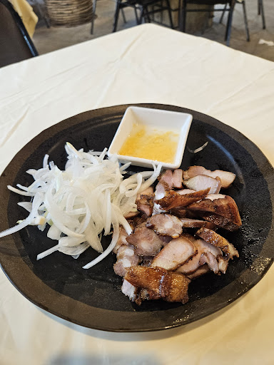 Read moreGot the special house rice and salted pork. Excellent food and fast service although we were only 2 people at the back end of lunch time. They did provide me with an English menu. The pork came with a vinegar and garlic dipping sauce (I think) as well as chopped onion. The special house rice was very good and I think it had white rice with green onion, lightly sautéed chopped onion, black pepper, and (big guess here) dry fried shredded taro. We liked the rice a lot, but we also didn't know to mix it...