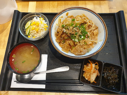 豬肉丼的部分,個人覺得吃起來有點豬肉腥味,但小菜還不錯,附的味噌湯也很好喝。