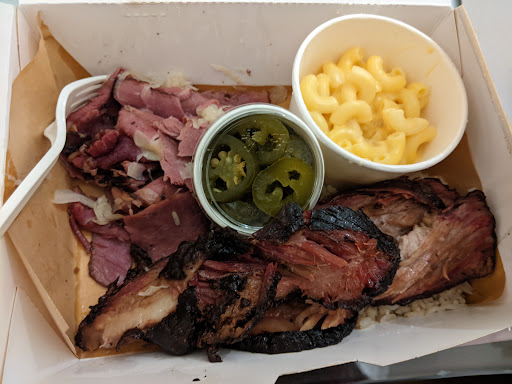 Pastrami & Sauerkraut: An unusual meat product to find at a BBQ joint, and I decided to give it shot instead of some of the more traditional offerings. This was both tender yet springy. The sauerkraut was mild which initially disappointed me, but it was actually well paired. This was not a black pepper dominated variety of pastrami like you find in the New England region and I found this to be a refreshingly subtle dish. The mustard sauce that accompanied it was sweet, tart, and surprisingly thick. My only complaint is the amount of meat for the price. That being said, I don't know the cost of ingredients here, so this may be a very generous offering.