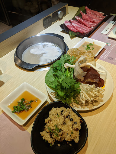 The food was amazing and extremely high quality. The choice of vegetables and meats was superb and everything was clean and well kept. Service was polite and attentive. The pork from Spain and the local pork from Taiwan were delicious with distinctly different flavors and textures. The beef varieties were also tasty and it was fun to try different beef from different regions. The meats were melt in your mouth tender. The kelp broth was flavorful - highly recommend. You could tell that the attention to detail in the restaurant was very high, from the quality of the food all the way down to temperature dials that face you so you can easily change the broth temperature. I will be back any time I am in Taichung. There is also parking here which is a premium...