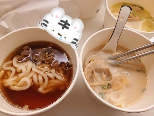 到對面做指甲,坐到屁股又痛又餓,發現對面有一間丼飯+烏龍麵,雙主食!眼睛瞬間亮起來,原本擔心是不是給發育中的小孩吃粗飽的店,保持著能填飽肚子,但未必好吃的心情踏入店裡,但我把11號套餐(咖喱豬排飯+烏龍麵)還有三個炸物吃光光🤩因為太好吃了,照片中有我的完食照。260元能吃到撐破肚皮,老闆是在做功德吧~ 走進店裡,櫃檯好長,我像迷路的孩子完全不知道該走到哪裡點餐、怎麼點餐。店裡算是半自助式的,自己找座位入座,直接到收音機那裡點餐,點完主餐後店員會問要不要炸物(3樣100元,當然要🤣)然後會給震動取餐器,回座等待震動📳取餐