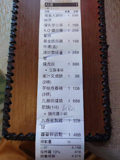 Read more現炒又快又好吃,可以給掌廚師加薪了 港式燒賣和港式燉湯,很慢很慢 現炒都吃完光光了,等了一會才上菜 但港式燉湯嘛!慢得有道理,平靜等一下好了。 終於上湯了,鮑魚翅燉雞,喝一口, 只有薑味雞水感,翻找也沒鮑魚,馬上和服務人員退餐 鮑魚沒有一起蒸燉,這一盅258元我沒法甘願付費 香菇燉雞168元/盅,薑味雞翅水 帶一個菇 黑蒜燉雞168元/盅,薑味雞翅水 帶一顆黑蒜 燉湯亂做,有給櫃台建議,不知未來會不會改進 口頭說會與廚師討論,也沒給其他回覆(口氣不覺得他們需要檢討), 這湯的味就是,全聯買2個雞翅,丟3_4片薑,水煮半小時,買單300多元很不值,燉湯很唔湯,雷! 。 裝潢很好,現炒也很好,管理與服務人員素質要教育 。 戴眼鏡的點菜阿姨,沒讓人感覺很舒服, 點菜時,一直喊等一下, 每點1_2道菜叫人等她寫完, 點10項,等一下 說了6.7次 不僅點錯,還少樣,叉燒酥寫錯,廚房做錯成叉燒包 阿姨,你很有趣,知道自己上錯菜,還問我要不要 回到家,我們也才想到蓮香粽沒有上菜 蓮香粽沒收錢,是阿姨跟本沒寫到。 用劃卡或QR code點餐,這阿姨不要出來點菜了。 我們到的時候,散客3桌...