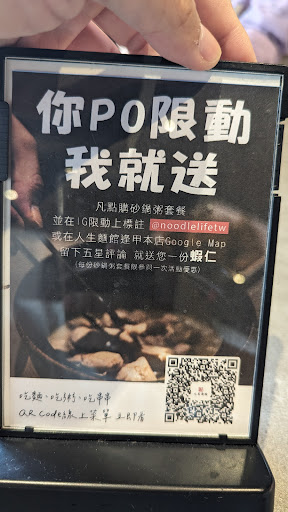 1.店內環境寬敞乾淨,但是桌椅擺設非常不適合用餐,桌面高椅面低,我身高170/同行人180都覺得麻煩的程度,搆不到食物真的很不方便。 2.當天我們點了人生麻辣麵跟各式小菜,店員應該先告知沒有套餐,或是在菜單上記號不提供套餐等等⋯而不是等客人點餐才告知沒有套餐的部分。服務態度給人感受不是很好,員訓需再加強。 3.店員上菜給了酒精膏的鍋具,途中問店員能不能將酒精膏熄滅,店員一副手足無措,一間諾大的餐廳,居然沒有配套措施可以熄滅酒精膏,我也只能笑笑的說那就不用了。 4.食材部分:所有小菜都是切成約原物料的1/4大小再以竹籤串成一串約1/3~1/2的份量,兩人點了五百多塊的小菜,將一堆不環保的免洗竹籤移除之後,小菜根本不到一鍋的份量,很明顯感覺得出來,店家極力想降低成本的部分。然後那個芋籤整個沉降到只有晶瑩透亮的澱粉,還不是每一口都有芋頭條,真的非常節省呢。 5.整間餐廳都沒有提供開水或紙巾(此心得為居家防疫之前光顧貴店所整理出來的,跟防疫衛生無關),開水部分,站在客人立場的想法是認為開麻辣料理店卻不提供基本的開水,只能金錢消費換取其它讓人不太想喝的飲料;紙巾部分,也是僅有桌上一人一份的一千零一張紙巾,不知道這樣店家能節省多少成本呢? 6.綜合以上感想,外觀就是網美打卡店,但是之後不會想要再次光顧,如果店家沒有即刻做改善,想必也是落得關門大吉的地步而已。