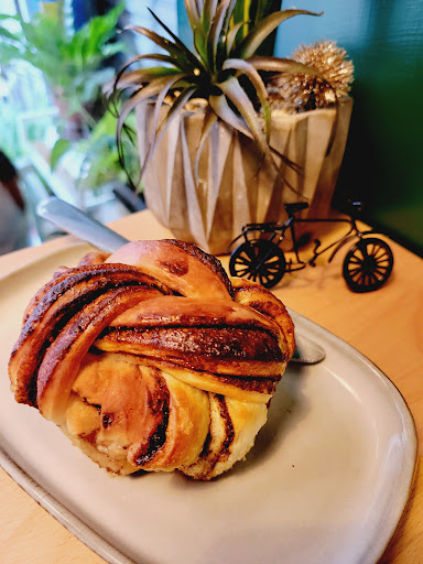 但老闆的肉桂捲不是那種偏甜的「網美系」口味,而是屬於大人的肉桂捲。有些帶有一點肉桂本身的辛辣感,甜味也很內斂,味道層次豐富,越嚼越有意思。老闆還會貼心提醒:「肉桂是溫熱的香料,一次不要吃太多,可能會上火、長痘痘喔。」這種知識性與職人感,真的讓人敬佩。