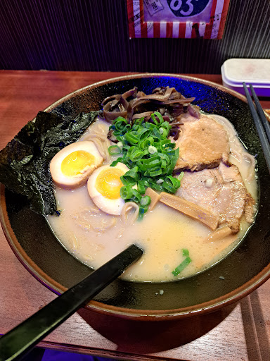 Compact restaurant specializing in Japanese pork ramen amid laid-back surroundings.