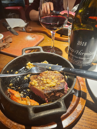 Steakhouse - Two parts to this review: Food quality and preparation (1 out 5) - Very low quality meats with lots of tendons and muscles. The NY Strip tasted like rubber, filled with fat. The lobster was undercooked and partially raw. The meats (New York Strip and Ribeye) came our medium rare even though we ordered medium well. The food came out very slowly (30+ minutes) and already cold. Service Attitude (4 out of 5) - the manager apologized several times and offered to replace the steaks and lobster, and took the dishes with problems out of the bill. The waiters were very attentive and tried to help the best they could out of a very awkward situation.