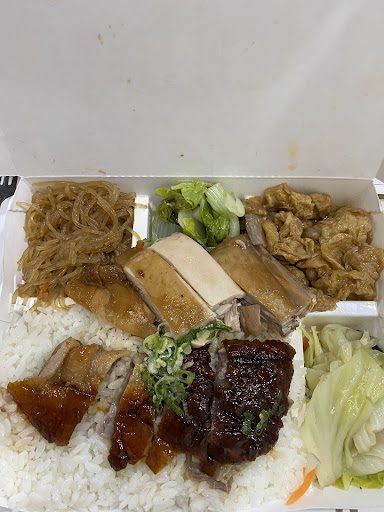 有肉的那塊烤鴨吃起來味道也是一般般,普通稍鹹。 油雞的話,中規中矩,口感還ok。 叉燒也還行,不會很硬也不會很柴。 至於配菜,簡直慘到不及格,葉菜類看起來軟爛帶點黃葉,吃起來也不好吃,味道怪異口感也軟爛,炒冬粉過鹹而且胡蘿蔔味道很重,菜沒吃完整個倒廚餘...