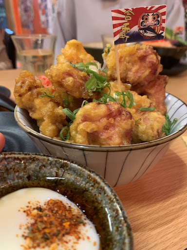 Read more❤️隱密的小店,生意很好 整體來說其實很棒, 雖然沒吃過太多這類的日式料理, 但我覺得整體來說還是很不錯的! 餐點 份量我覺得算普通, 不會讓人覺得太少太沒誠意! 餐點|唐揚雞丼飯 不愧是有星號的,雞肉真的是滿好吃的很軟嫩又香, 那個醬酸甜的很剛好,不會像之前吃過的覺得味道太重不好吃,反而會想去沾🤣 這類型的可以+60$升級, 加送小菜、沙拉和蒸蛋, 個人是覺得這個部分CP值普通, (不過沒拍到套餐小菜部分) 餐點丨鮭魚炒飯 本人就是炒飯愛好者, 一開始看其他評論有提到太油膩有點緊張,不過後來吃起來覺得還好 (當然也可能是其他吃到的炒飯更油🤣) 但是整體來說我覺得香氣也很足,好吃! 4星原因 餐點真的很棒, 不過覺得等待時間真的很久(半小時以上) 而且其實好像沒有付水, 餐點來了餐具卻又間隔很久才來, 而且位置不多,雖然不會到太擁擠, 但也不到舒適的空間, 廁所也還要到市場外面, 又只是簡便的流動...