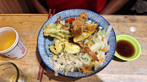 We really like this place on the Chongen road, the food is great and the price is good, and the food is fast. Inside is a little untidy which is why they get an overall four and not a five. The team inside work really hard and produce some amazing food, our fave is the tempura king prawn and I love the crispy pork and rice. There is free black tea as well, if you on this road make sure you give them a try, they also do take out and delivery. Cost for our two dishes and a large beer was two hundred...