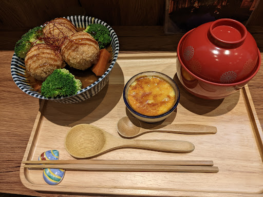 Accompanied by tender, well-seasoned carrots and broccoli, the dish feels balanced and vibrant. The miso soup is warm and mellow, rounding out the savory components nicely. Finishing with a creamy, lightly caramelized custard pudding, the dessert is smooth and not overly sweet—an ideal end to the meal.