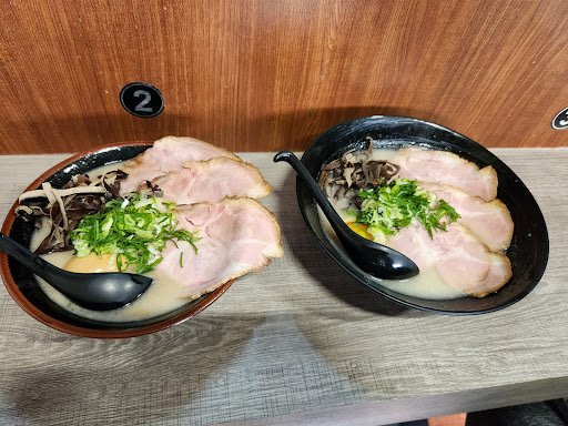 Read moreWe had the thick series ramen (left in pic) and the normal tonkotsu ramen (right in pic). Owner warned me that the thick is very thick and asked for my confirmation. It was indeed very thick and rich! Very nice if you want to try a broth that has a consistency closer to a gravy. Unfortunately we couldn't see the cat, guessing it was sleeping since we went during noon. Can tell that the owner cares very much about the quality...