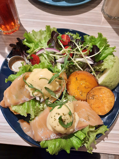 I didn't expect too much when a friend recommended to check out this tiny looking shop next to Children's Park. As I was led upstairs by the knowledgeable and friendly server, I realized that this place has 3 floors of seating and takes their food and approach to food very seriously. The dishes are inspired and creative, and contain excellent ingredients, and the plates come out of the kitchen looking gorgeous and scrumptious. I would suggest to the chef to quickly grill the tomatoes on the Benedict to caramelize the outside and bring out the sweetness, to toast the ciabatta lightly to make it crispy for textural contrast, to cook the bacon a little longer to crisp up the edges and melt some of the fat, and to warm up the plates to ensure a still warm meal. Otherwise the eggs were perfectly runny and of high quality, the breads fantastic, all ingredients fresh and clean, and the dishes fun and healthful...