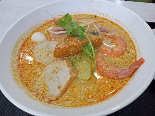Hainan Chicken Rice (100 NT) As I know for the 「Hainan Chicken Rice」, the rice should be cooked using chicken broth instead of plain water to bring additional taste to the food (please correct me if I'm wrong). But here, they just use normal rice, but hey, the main point here is not the rice, maybe you will think it should be the chicken, but you WRONG!!! the orange color chili is the best from this course. I bet they put lemon in the chili to wash down the grease. and of course the chicken is very good too, you can eat it without any problem even though for the elder. I fall in love with the chili 2.Curry Laksa (90 NT) At first, it seems that they serve only a little portion of noodle with so much soup in the bowl, but as long as you eat the food, you will find that actually there are also many stuff in this bowl. I prefer eating meat than seafood, so this food is not really what I want, the soup is MARVELOUS though, I drank the soup until the last drop LOL.