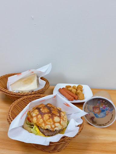 看了一下菜單價位還可以,就進去用餐啦! 有粉漿蛋餅、漢堡、貝果、鐵板麵、飲品等 米登丸口的漢堡真的很特別,居然有菠蘿漢堡