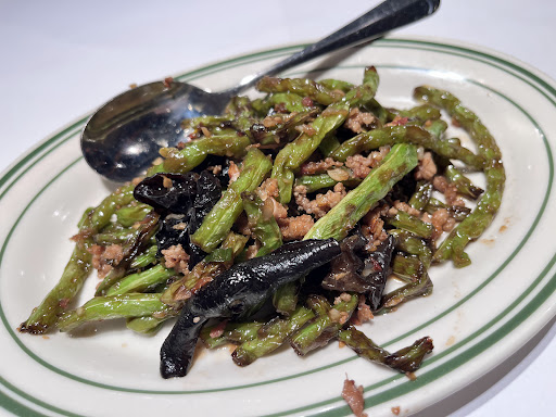 ❽青菜🥬 ⑴湘西高麗菜$210:有放鹹香臘肉,單吃也不會死鹹,高麗菜鮮脆,沒有過硬或老掉的地方。 ⑵私房乾煸四季豆$270:吃得到些許薑味,有放木耳,整體清脆,咬下去聽得到食材與牙面摩擦的聲音,臘肉沫帶點彈性,可以增添口感豐富度。
