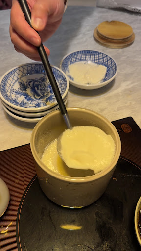 💫飯後餐點部分💫 飲料我喝小農珍珠鮮奶, 上面有一層黑糖,非常之爽。 珍珠鮮奶沒有奶茶就是純鮮奶🥛~ 飯後都會附上水果~還蠻解膩(? 它的豆花好吃! 因為本人挑食不愛吃豆花, 所以一直沒有吃過, 最近吃了雙人套餐有附,就吃了幾次, 只能說愛上,因為豆花很香, 沒有我會怕的那種奇怪的豆味~ 而且手沖的過程很讚~