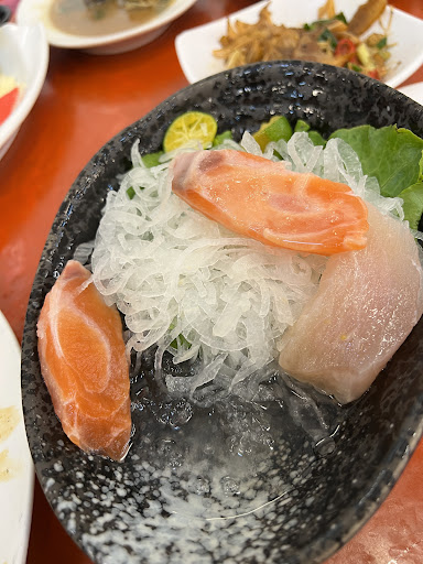 先說結論,11/21中午帶長輩從台北到這裡用餐,沒想到遇到人生40多年來最糟糕的用餐體驗之一,糟糕到我這麼懶的人也必須一定要來寫詳細的評論 本想著6千多則評論,4.2顆星的評價,就算沒有很滿意,至少不至於踩雷,沒想到我還是太天真了, 白飯吃起來像隔夜的,點餐的時候,工作人員不會跟你確認,導致上了我們根本沒點的菜,菜品不是口味問題(口味問題是個人喜好),而是整個後廚的sop都有問題,比如生魚片未退冰(整塊硬邦邦的程度),食材沾染冷凍庫的味道,菜品上菜時已經溫溫的沒有熱度,吃到中後段嘴巴裡面的味道難受到需要一直吐口水(沒辦法確定店家用了什麼調味料,只知道我們平常在外面吃飯都不會這樣),切飯後水果的菜刀不乾淨有異味等等問題,4個人7道菜(有一道是我們沒點卻硬上的)最後沒吃飽,不是吃不下,而是太難吃,我們是餓著肚子結帳離開再去找東西吃的,長輩吃到生氣