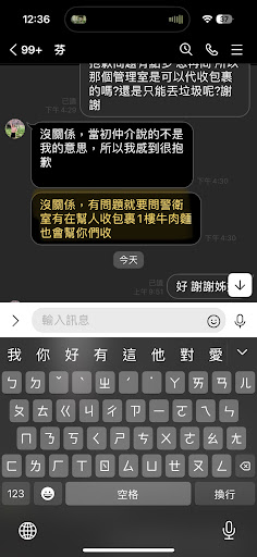 沒有偷聽啊,我當場回來碰見就直接跟你們說了,是房東沒說清楚丟垃圾時間,告知我們隨時都可以丟。你們就不能好聲好氣說你們清楚了、了解了嗎?有必要雙手一撇說不乾自己的事不乾自己的事?還說兩遍。口氣差,還跟其他房客議論,請問聽到當下能不生氣嗎?再來包裹也是房東說可以請你們代收,才會麻煩你們,這邊LINE都有截圖證據,全部都是房東的片面之詞,事後發生這些事,才補充你們沒辦法收以及管理室丟垃圾時間為8:00-20:00,我們也沒有惡意與誰為敵,但就是態度問題,並不是我們先不友善,還有三樓住戶就兩位沒有刻意叫人刷一星,也就我們兩位給你們一星而已,然後上個月也點過你們東西吃,也並不存在刻意評論的問題☺️ 反正經過這件事找房東問清楚後,以後絕對不麻煩你們,只是希望以後討論事情剛好遇到當事人,就老實說你們的困擾就好,這件事說到底也是房東造成我們的麻煩,搞得我們好像是什麼很糟糕的人,房東不知道住多久連8:00-20:00丟垃圾現在才知道,在那之前跟我們說隨時可以丟,也因此牽連你們,要是你昨天提出來我肯定給你道歉,而不是你昨天兩句不乾你的事口氣差來打發,今天才在這邊留言因為我們你們被誤會丟垃圾之類的話,如果有誤會為何昨天不提出來? 那次的包裹很謝謝,但就如你看到的下方對話,前面兩張都是9/4-7之間的內容,第三張告知8:00-20:00是最近的事,包裹問題詢問房東管理室是否可以收還是單純丟垃圾,房東還多說一樓可以,我們才以為允許,都是房東片面之詞,誰知道還要先知會你們?誰知道還要先問你們?我們問過房東以為可以才沒再知會你們好嗎😡 沒有人想造成別人麻煩,我們早在上個月剛入住就積極詢問房東,如果真的要個道歉麻煩去跟房東要,搞得好像我們故意麻煩一樣😡 是你們先不尊重,昨天當著你們的面說明事情經過,你們並沒有友善溝通,而是擺著一副無所謂不乾你們事的態度,既然房東的問題,我們也沒有理由要承受你們一樓牛肉麵的惡意態度,當事人10/7下午18:00左右就在你面前解釋,你如何回應的?你不尊重別人還想要別人對你微笑嗎?我們昨天先友善溝通你回應了嗎?沒有,所以今天才會以這邊評論的方式,順便附上截圖證據 明明就可以好好講的東西,偏偏要用不干我的事你們的問題,搭配亂揮手的動作,兩句話態度極差來回應,就問到底誰帶著惡意? 你們老闆有時間再問是誰,就代表有時間不是嗎?剛好當事人在你面前說了不就剛好回答問題,好好溝通很難嗎?還有自己下來領包裹臉臭真的不好意思,本來就長那樣,那天我也還沒與你們有任何過節沒理由對你們發脾氣不要隨意牽拖,口罩問題也請你好好...