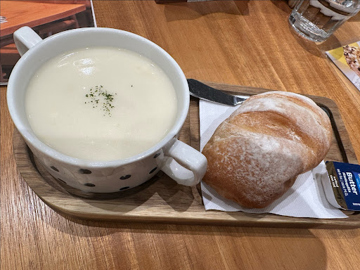 ➑超值選B套餐$149: ⑴麵包🍞: 整體走蓬鬆路線,泡濃湯好吃。 ⑵濃湯🥣: 是濃郁的奶油玉米濃湯,質地滑順,好喝。 ⑶甜點🍰0$(下標原價): ⓵抹茶提拉米蘇$180: 拍謝,個人覺得不好吃,外層的巧克力皮滿滿的香精味,中間奶油很多,糕體偏乾,紅豆好甜。 ⓶南瓜千層蛋糕$180: 仿佛在吃南瓜本人!塗層有沙沙的口感,可以說是濃稠了。 ⓷焙茶千層蛋糕$180: 有茶的清香,越吃越濃,切下去能明顯感受到千層的觸感。