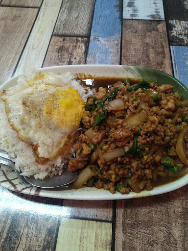 打拋豬(110): 偏向台式的味道,量極大,米是泰國長米,非常適合追求CP值高的人,雖然售價110,但是肉多飯多又加一個荷包蛋,也算是物超所值。 但是,米有一些混用隔夜米(類似米鍋上久未處理已經乾掉的米),不然就是沒洗鍋子,直接煮飯?不管怎樣,這種口感導致用餐時的感覺不佳,如果只是一兩口就算了,偏偏還很多,所以也就順手拍照做個留念,畢竟從北屯千里迢迢過來吃到這種,不怨也很難。 另外不管吃不吃辣,建議都可以從小辣開始點,個人是吃一點點辣都會流汗的人,點了微辣,吃下去的只有滿頭問號,真的有辣嗎?