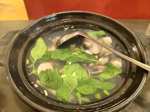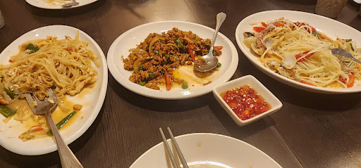 While the 3-flavors fish salad I got tasted nice enough, the bed of lettuce they served it with was the regular grade supermarket lettuce that has the least flavor and least nutritional value. The fried fish pieces that it came with were only better than so-so. The clam soup was indeed delicious and the better of the two dishes. Many of the clams were still locked shut, which usually seems to indicate the clams might not be so fresh. The lemonade was tasty. The rice was, well it was white rice. It looked different, so maybe it was "Thai jasmine rise".