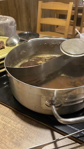 我們點了688(平日午餐)海陸精選+100雙鍋底(牛奶&麻辣壽喜燒),用餐時間1.5HR 麻辣壽喜燒對我們而言其實沒什麼辣度可言 開鍋沒多久,湯瞬間滾起來,牛奶鍋漫出來溢到壽喜燒那邊😱服務員很貼心,另外拿了辣油救了我們毀掉的壽喜鍋湯底