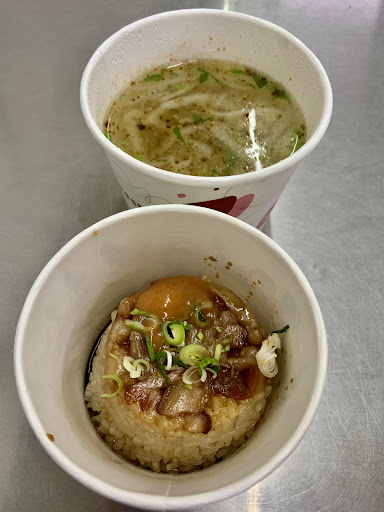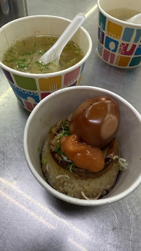 米糕好吃,肥肉與淋醬和糯米充分攪拌後,入口的味道很好。肉焿湯也是油蔥清湯內,有裹粉的里肌肉與大量的蘿蔔絲。小菜粉腸則是燙過後,淋上醬料與米糕的米漿和薑絲,混合起來蠻好吃的。用餐時段生意很好,...