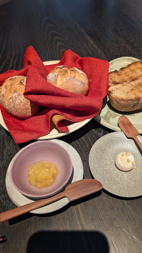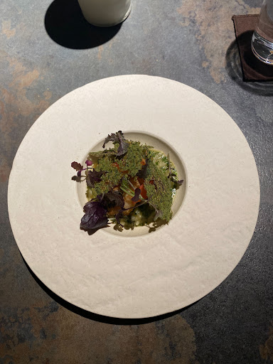 Ambiance and Service Sur- occupies a thoughtfully designed space that mirrors its culinary approach: minimalist, understated, and deeply atmospheric. The interior features a palette of gray tones, dark wood, and textured concrete walls, creating an intimate and focused dining environment. The lighting is carefully curated to highlight the dishes as they arrive, allowing the food to truly take center stage. With only around 14 seats, the small dining area ensures a highly personalized and immersive experience.