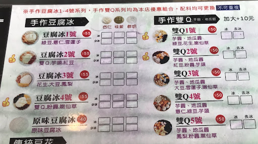 優點: 不甜膩、很清爽、食材吃的出來很新鮮(完全不會有可怕的冰箱、冷凍味)!👍👍👍 豆腐冰比市售布丁更爽口、滑順! 雙Q(芋圓、地瓜圓)煮的剛剛好,跟外面冷凍口感一點都不一樣。