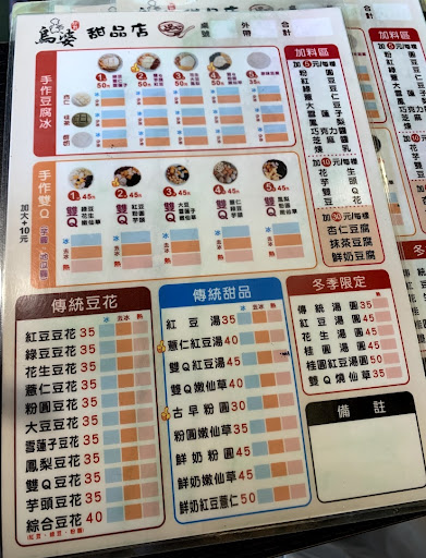Read moreIG: tiger.eat 今天分享我高中時期超愛的豆腐冰給大家🍧 烏婆傳統甜品店位在沙鹿車站附近 主要販售豆腐冰、仙草、芋圓等等⋯ ▪️豆腐冰2號 $50 豆腐冰選了抹茶口味入口綿密滑順🥛 配料有芋圓、地瓜圓、芋頭、紅豆 芋泥挖成球狀口感軟綿滿滿芋頭香氣 整體甜而不膩夏天來一碗非常清爽🔥 ▫️雙Q2號...