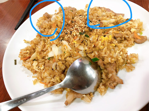 1.肉沒熟!!東西賣比外面貴就算了,最基本豬肉要煮熟!肉絲炒飯肉都有沒熟還粉紅色的,以反映過也處理過,但連一句道歉都沒有就不了了之!? 希望本店老闆能重視這問題 (以下會附圖片)
