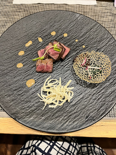 [餐點] 8.4分 餐廳目前只有一個價位,1,380元,的套餐供選擇,含甜點總計9道餐點。「刺身」展現了師傅的好刀功。「烤魚」可能有醃漬過,跟同業著重於食材原味很不同,挺特別。「螃蟹」可以挑體型大一點的,食用起來會比較方便。「牛肉」口感軟嫩,調味也好。「鹹派」內餡非常好吃,派皮則有加強的空間。「湯品」非常的香。「飯餅」挺好吃的,雖然表面烤得稍硬,但嚼起來很香。部分的器皿很雅致,個人很喜歡。幾個建議如下,ㄧ、可以提供不同價位的套餐供消費者選擇。二、建議餐點份量可以增加,份量增加的同時並提高套餐單價,個人可以接受。三、盡量縮短餐點與餐點間讓客人等待的時間。