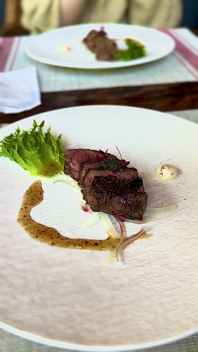 用餐環境不佳:當天座了戶外,蚊蟲多、桌上有螞蟻在爬、會有落葉掉到你的碗盤上,這位置根本不適合拿來待客。 吃起來非常「台式」,調味、料理手法粗糙:北寄貝很熱炒店、牛排很像Costco(普通但每塊牛排熟度不一)...