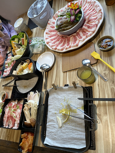 The food, place, & service worth the price. I ordered 兩吃過 (350$), a combination of hotpot and barbecue. I chose the shrimp + chicken meat. They gave us 1 big bowl of mixed vegetables (including mushrooms, shrimp, surimi, yam, pumpkin, and others), the shrimps, chicken meat, and one type of noodle. The shrimps were big and fresh. It’s delicious!